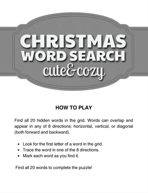 We’ve created the perfect holiday activity for you—our Christmas Word Search! This book is packed with 100 festive puzzles, all filled with Christmas-themed words to get you in the holiday spirit. Whether you’re relaxing at home or looking for a thoughtful gift for a word search fan, this cozy collection is sure to bring some extra cheer to your season!